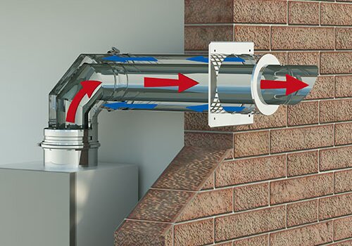 Concentrisch universeel systeem voor gesloten gasgestookte verwarmingsketels.