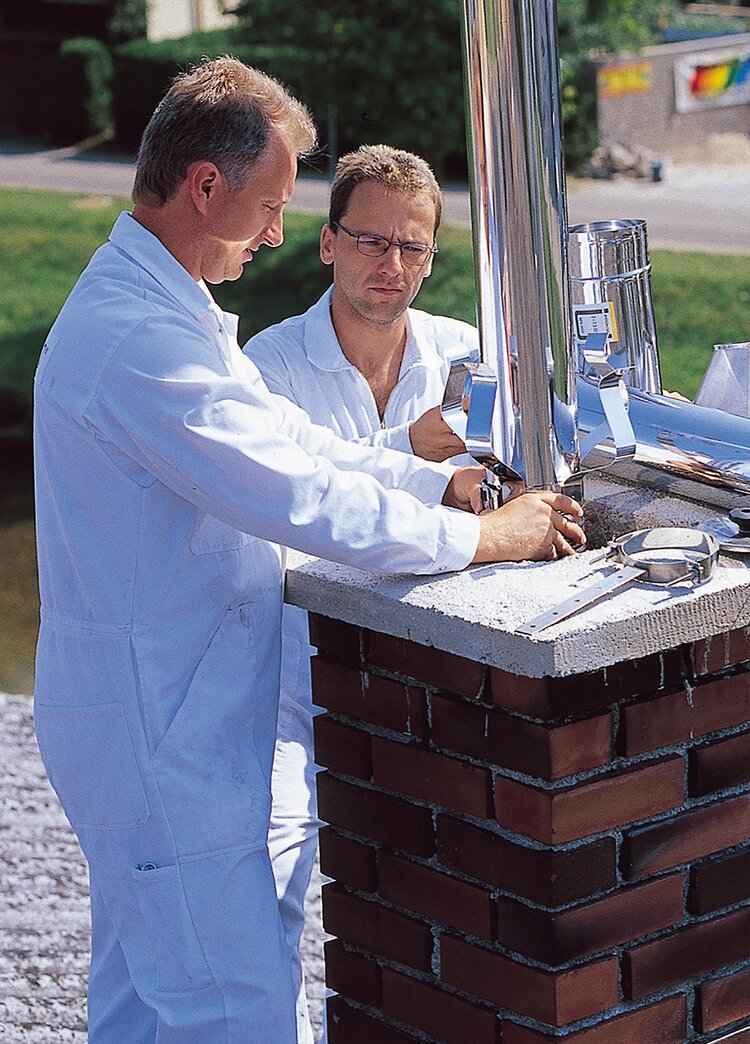 Kõige levinum lahendus. Kergesti paigaldatav, vastupidav kondensaadile ja kõrgetele temperatuuridele. Kasutatakse nii tahke kui ka vedelkütuse seadmetega.
