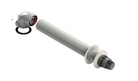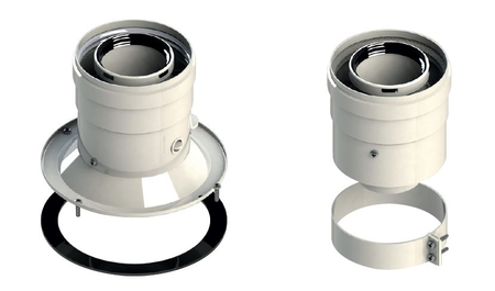 Il sistema camino doppia parete versione coassiale interno plastica esterno metallo bianco, per sistemi bilanciati e concentrici