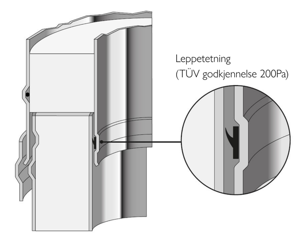 - Skjøtesystemet øker stivheten i konstruksjonen og sikrer effektiv drenering av kondens i røykgassen