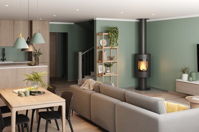 Unikalny system, który łączy w sobie zalety stylowego pieca kominkowego zintegrowanego z kominem.