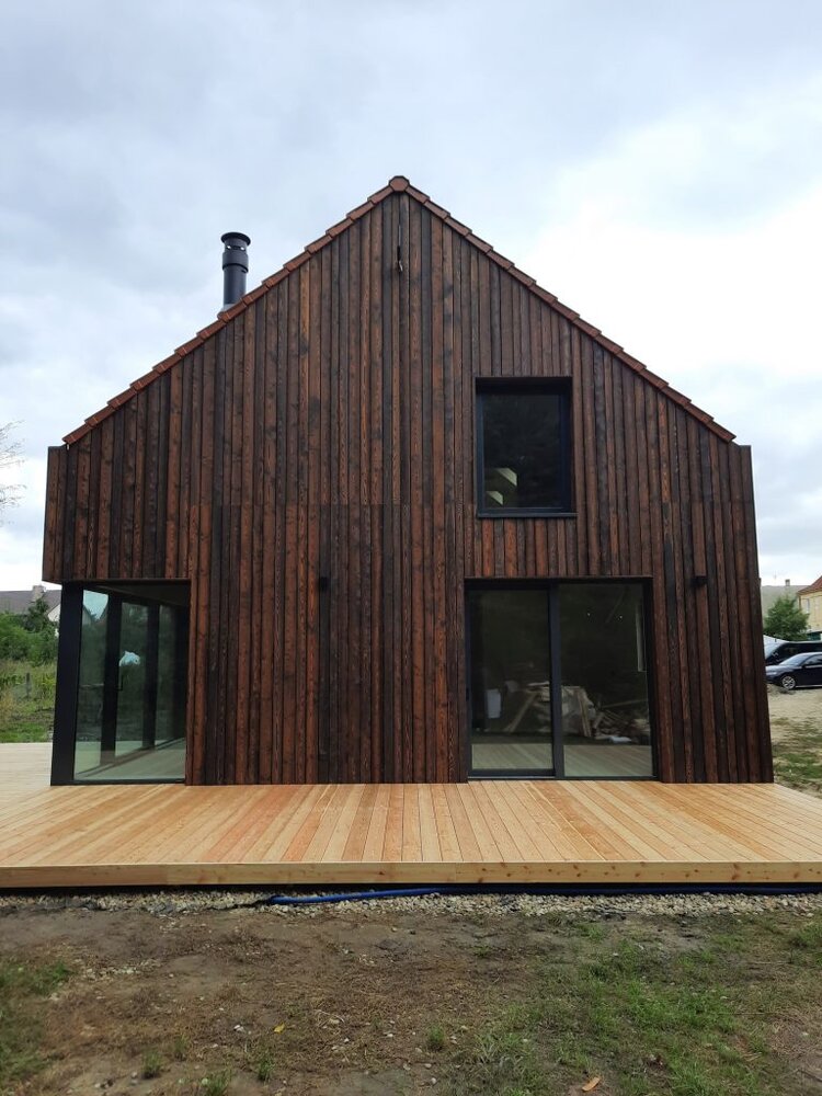 W domu typu nowoczesna stodoła sprawdzają się także stalowe kominy zewnętrzne, które mają nowoczesny styl, pasujący do bryły budynku. Stal może być pomalowana na czarno, co jest częstym wyborem inwestorów, ponieważ komin estetycznie zgrywa się z wykończeniem budynku – zgodnie z zasadą czarny pasuje do wszystkiego.