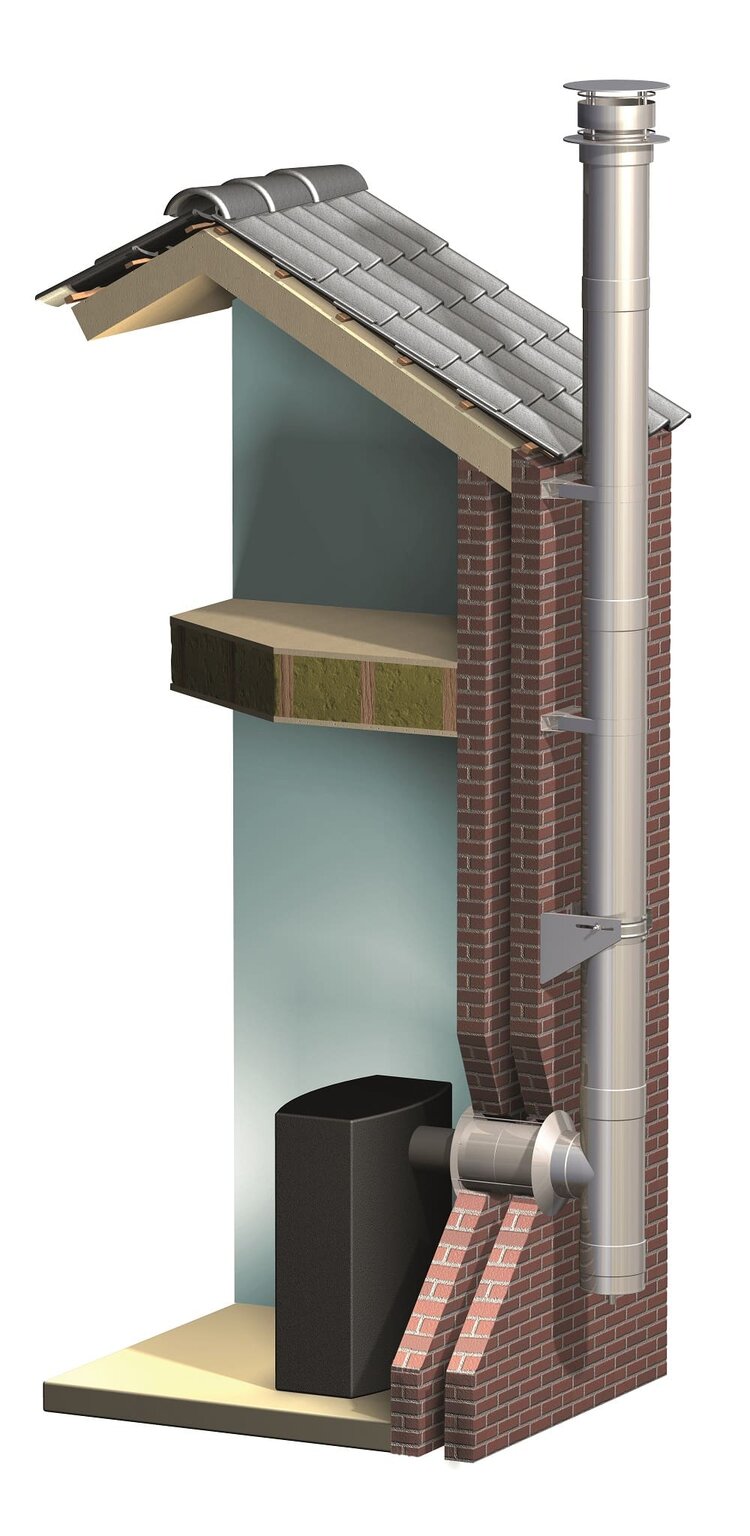 To modułowy, wielowarstwowy system odprowadzania spalin, wykonany z wysokojakościowej stali ze specjalną wysokotemperaturową izolacją. To komin bez mostków termicznych z nieprzerwaną izolacją od podstawy do zakończenia komina. Jest odporny na pożar sadzy. Montowany w odległości do 400 mm od ściany, gotowy do użycia natychmiast po montażu.