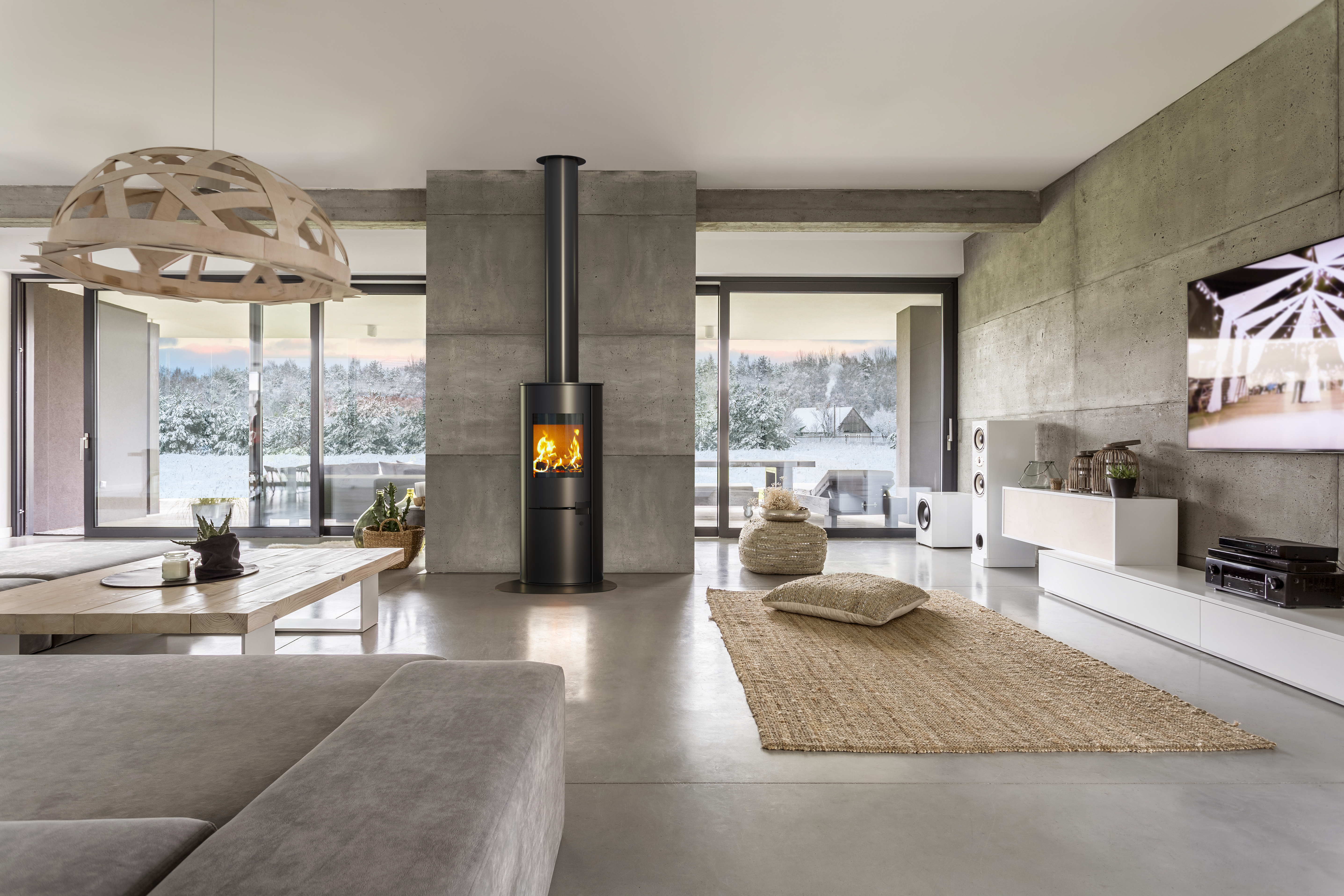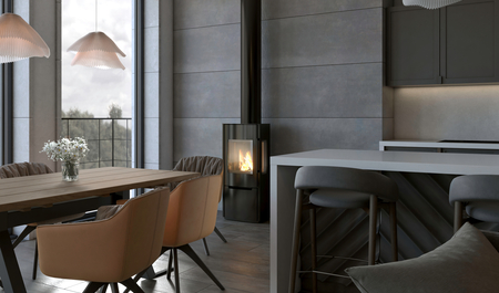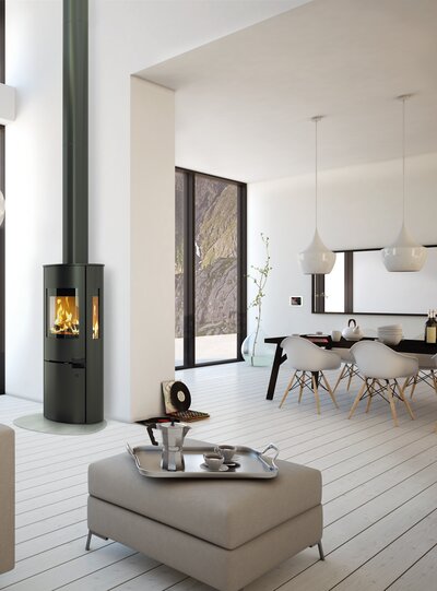 Atraktívne krbové kachle tmavosivej až čiernej farby s možnosťou napojenia zvislého koncentrického dymovodu pre odvod spalín a prívod vzduchu