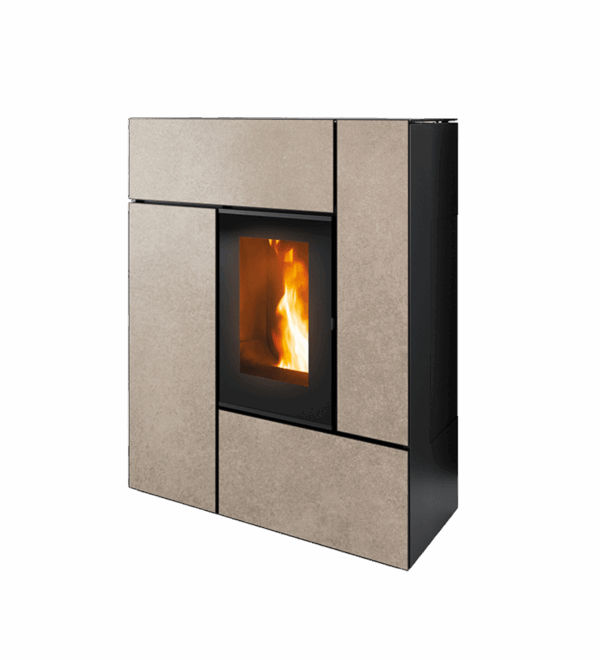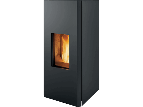 This beautiful stove combines the most innovative operating technologies with a Nordic minimalist design. The cladding is entirely in painted steel (Black and Bronze).
